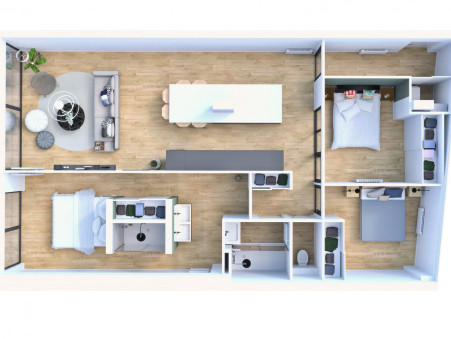Les matériaux ont été choisis avec soin : parquet bois, menuiseries aluminium, salle d’eau design avec douche à l’italienne, cuisine aménagée et finitions élégantes.
