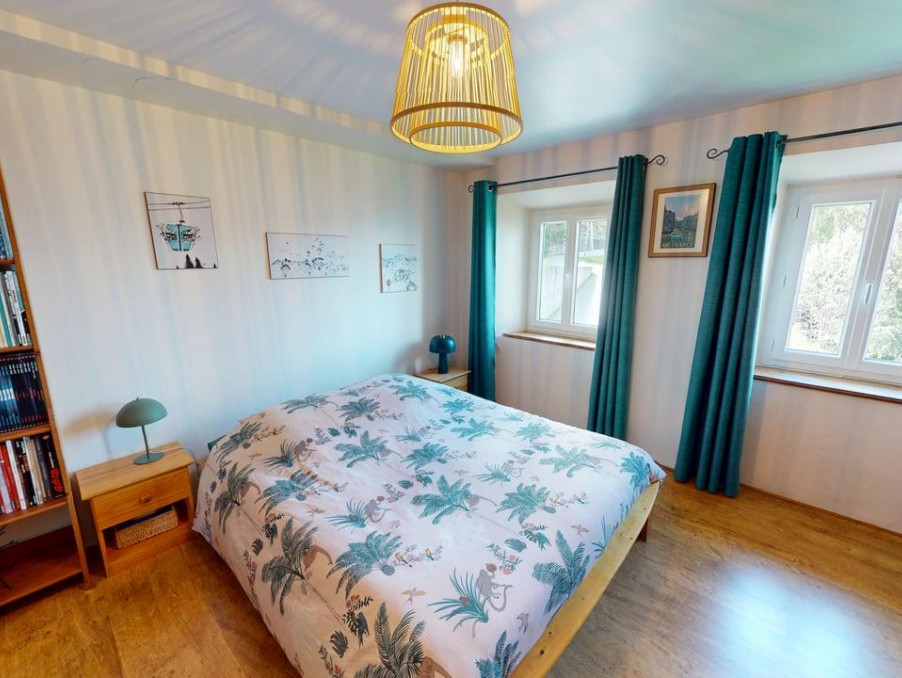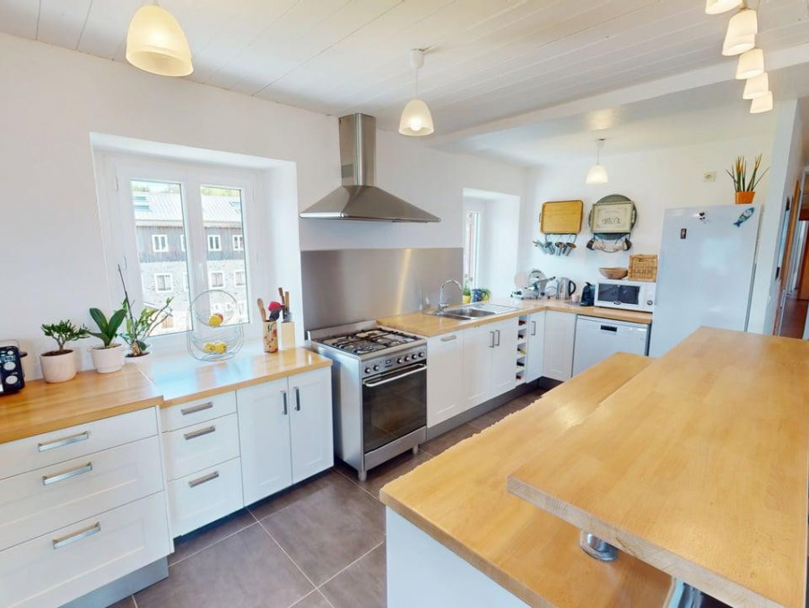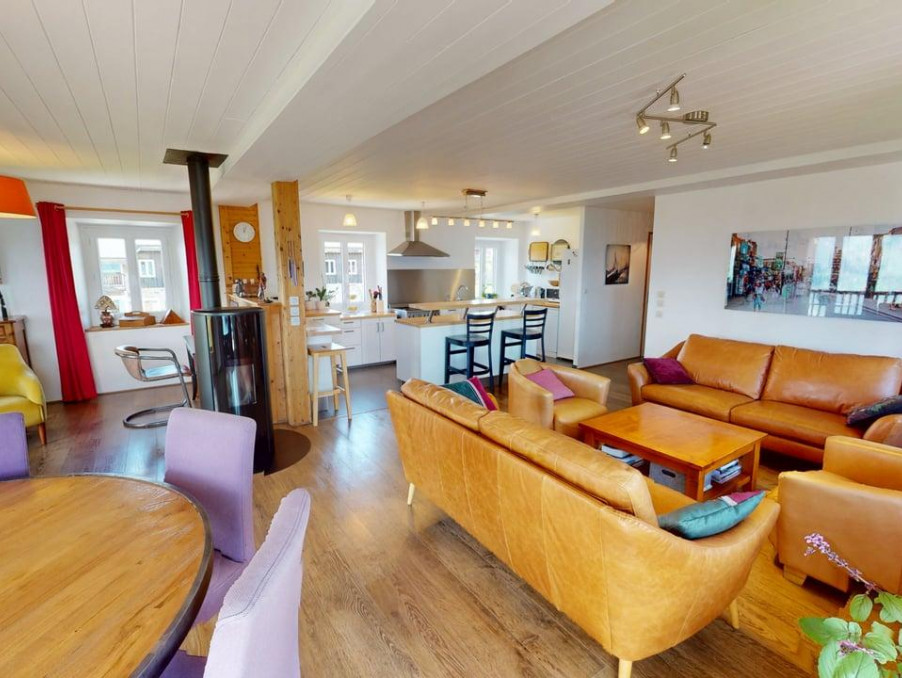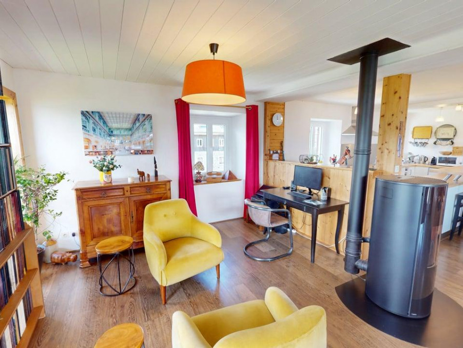 Le bien comprend un sas d entrée; 4 chambres spacieuses et lumineuses, une salle de bains avec baignoire et douche, wc indépendant, buanderie, un grand séjour loft de 55m2 avec cuisine américaine, poêlé à bois, balcon et terrasse. Les combles ainsi qu'une réserve/atelier de 70m2 situé en rez-de-chaussée sont aménageables.