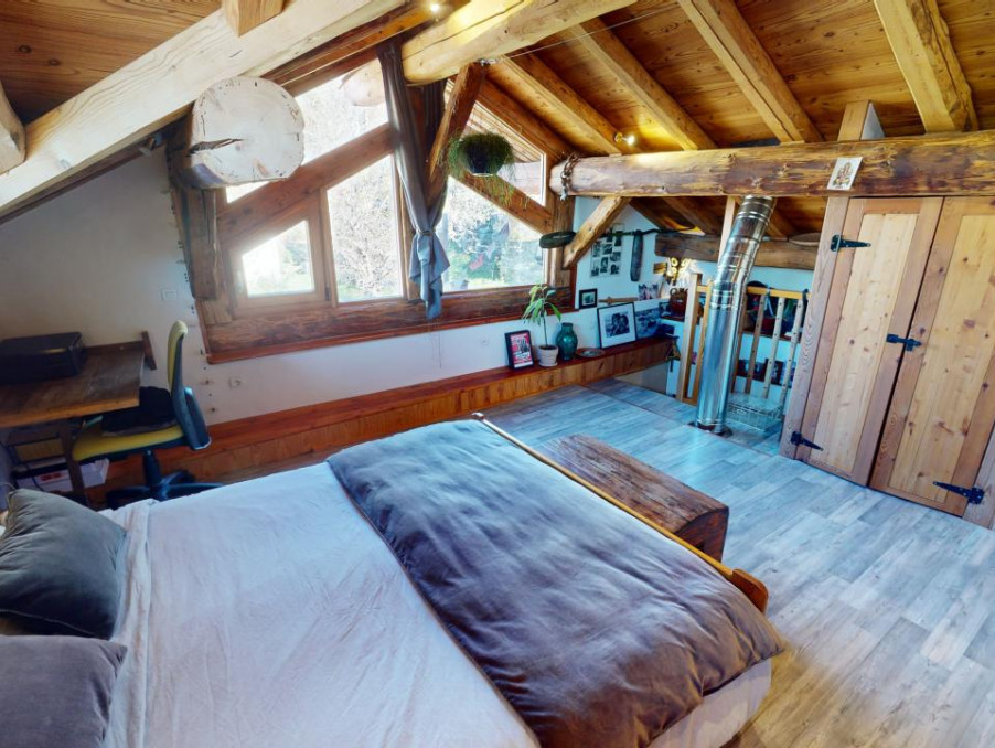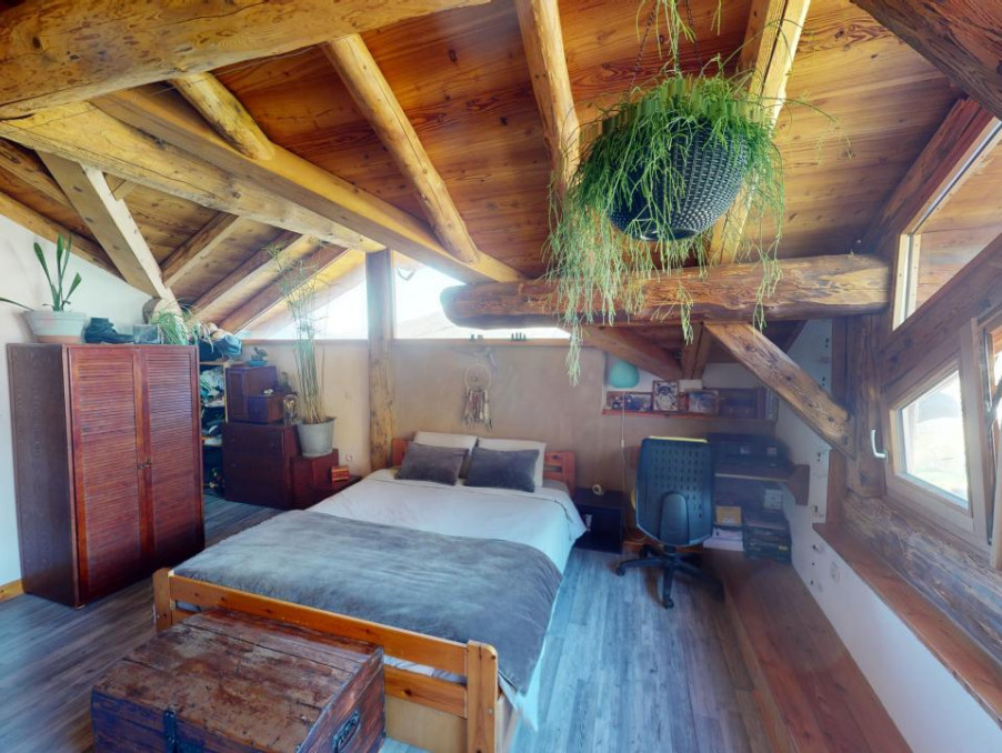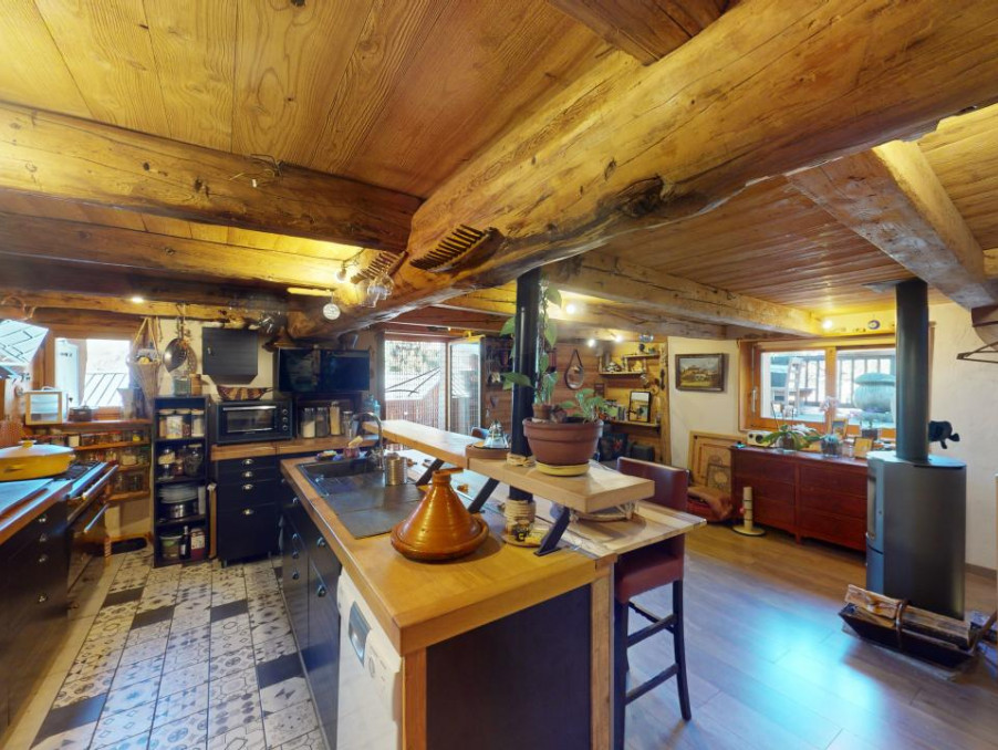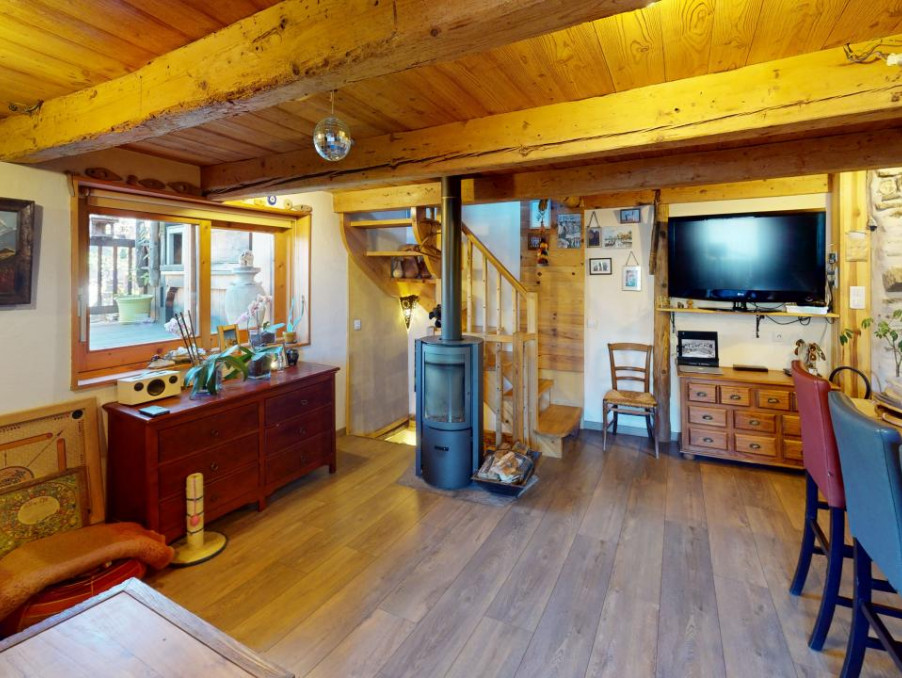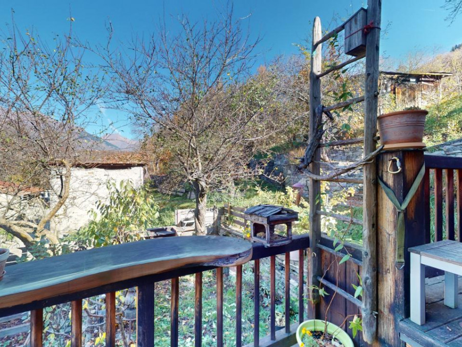 VERSANT LES ARCS - Dans un hameau proche station et chef lieu, un charmant chalet mitoyen rénové sur 3 niveaux en pierre, bois et lauzes, possédant une belle terrasse et un petit potager.
