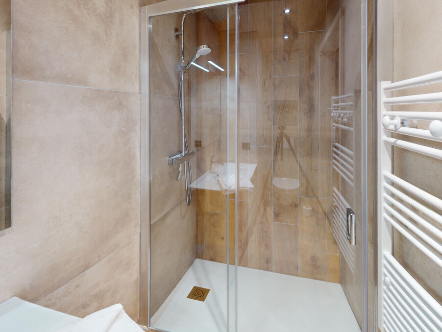Au niveau 1 (49,61m2) : 3 chambres , 3 salles d'eau avec wc et un sauna .