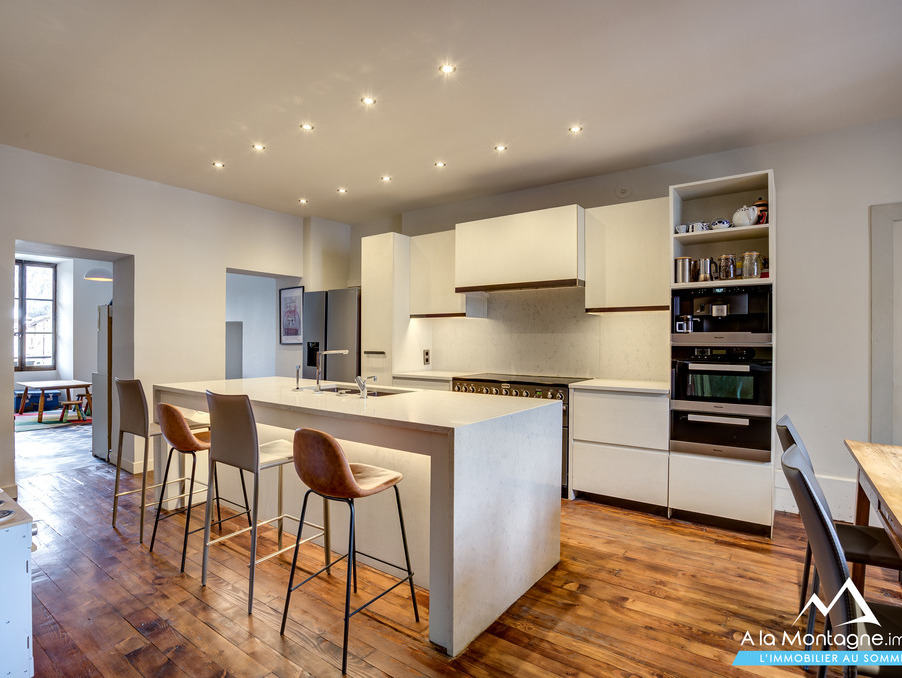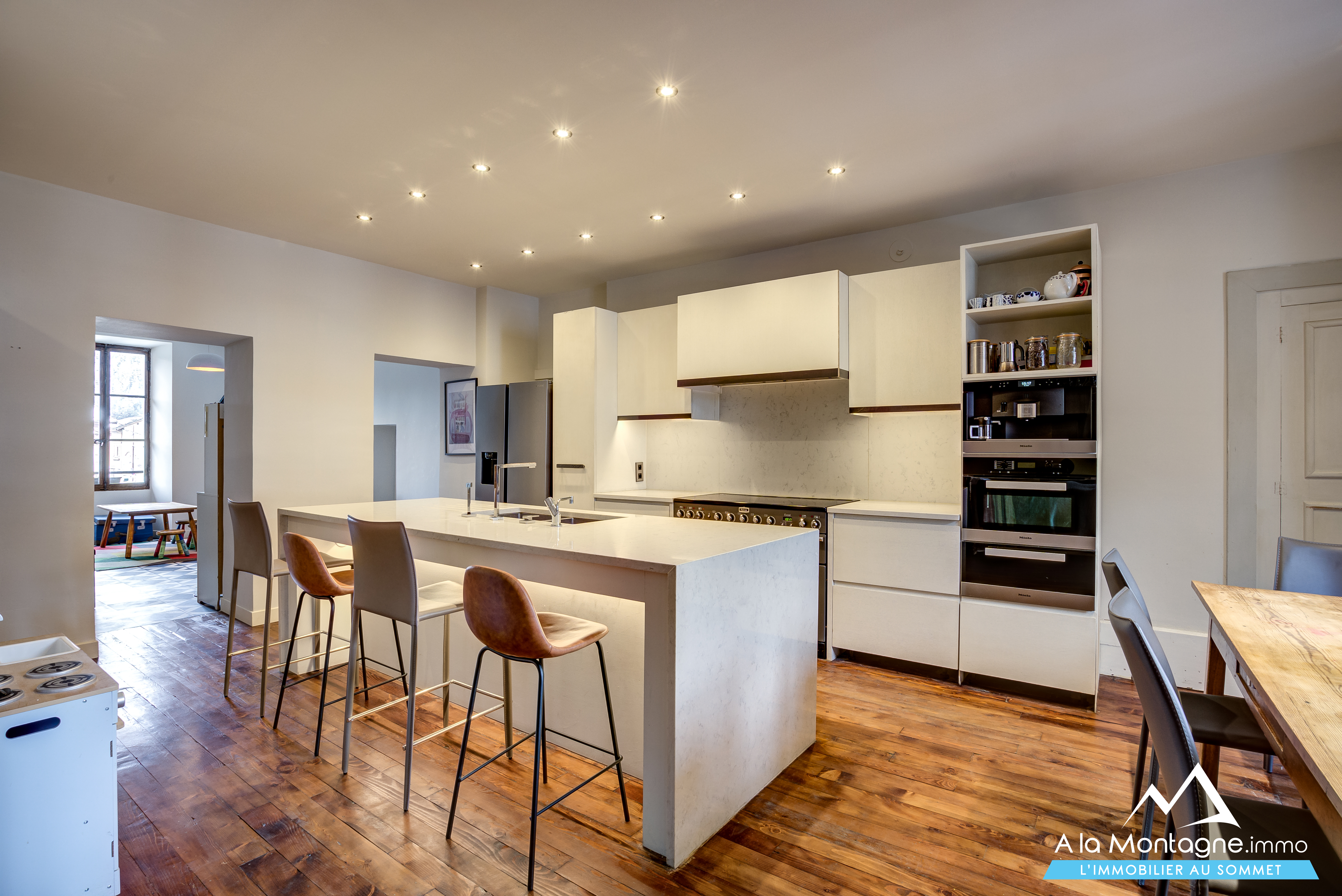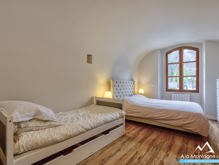 A droite de l?entrée principale se trouve un garage avec porte électrique, local/atelier à skis et accès à la cave à vin. Sur la gauche de l?entrée principale se trouve un appartement avec accès indépendant, cuisine et salon. Une grande chambre avec plafond voûté donnant sur le jardin et une salle de douche (quelques finitions à prévoir).